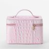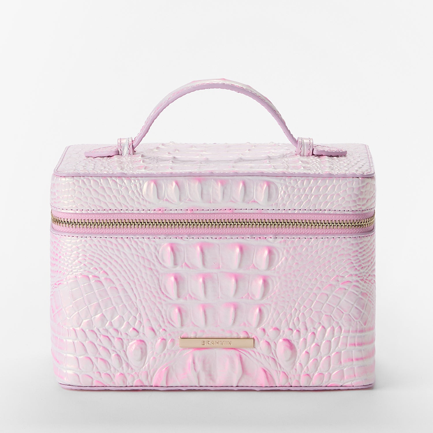 The Charmaine is a must-have travel makeup bag. This structured train case offers plenty of space for your cosmetics and toiletries. Store foundation, blush, powder, mascara, wipes, and more. Use the interior elastic pocket to keep brushes and other items in place. A wide zip-around opening makes it easy to retrieve makeup, while a hinge design lets you quickly view the inside contents. The top handle lays flat for easy storage.