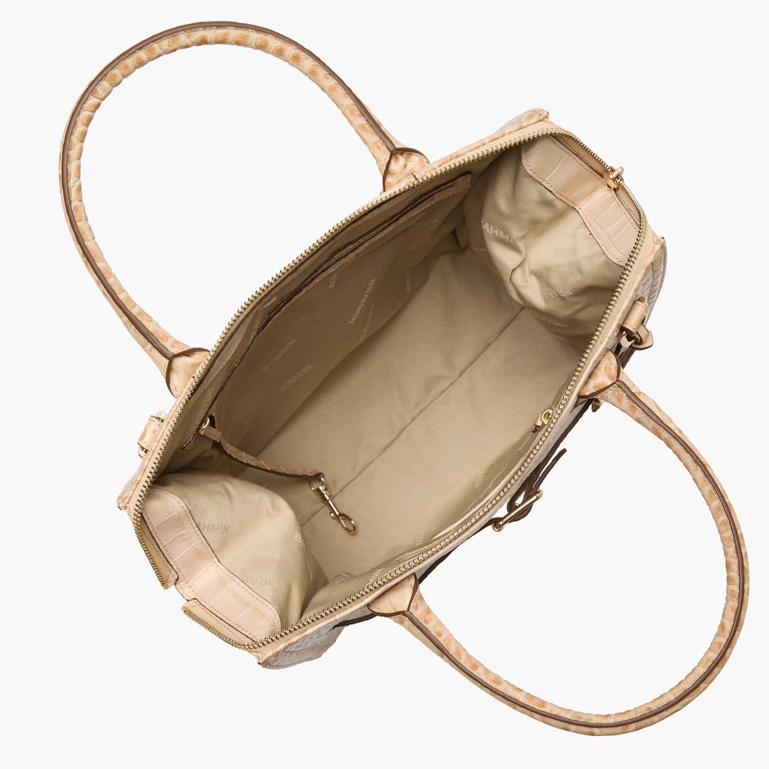 The Caroline is a polished, uber-stylish satchel featuring clean lines and a classic structured shape. A zipper closure keeps your items secure all day, while various interior compartments keep everything organized. Stash your phone in the convenient back slide-in pocket for quick access, and attach the removable strap in a cinch to go hands-free.