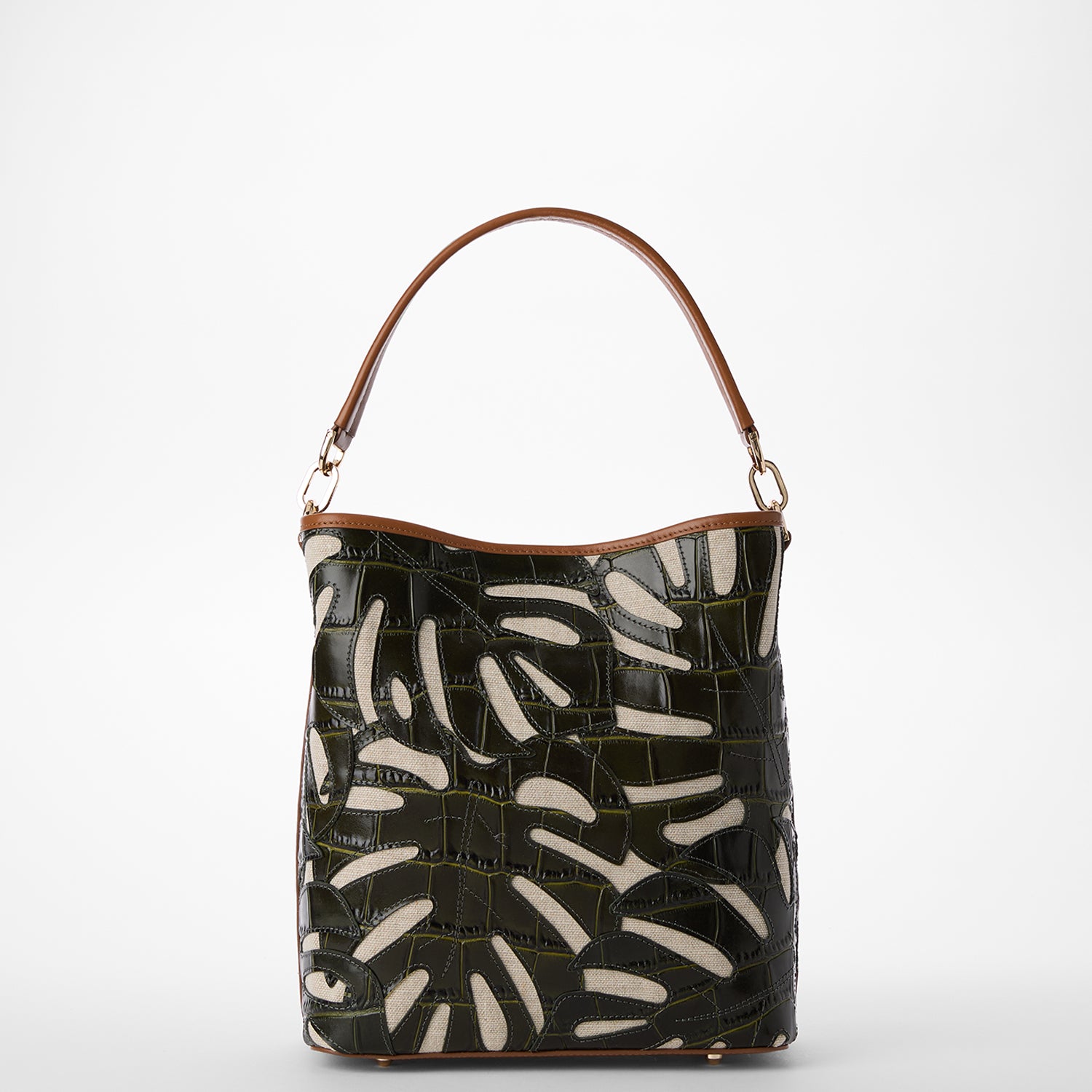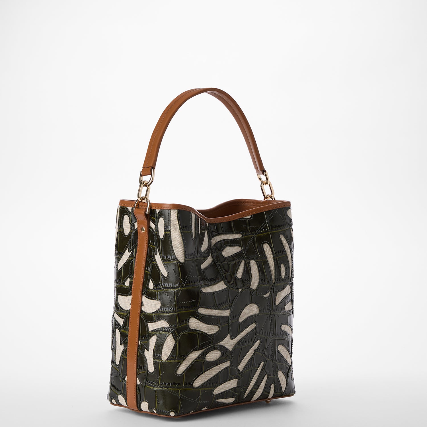 Featured in Cacti Green Abrigado, a bold botanical print in a blend of wearable greens. This novelty collection features cut out botanical leaves in a deep green flat croc on a neutral soft linen backing. A smooth leather trim in a warm tobacco lends versatility to the collection. The details showcase our commitment to craftsmanship and the color palette is rich and easy to style. Made with genuine leather.