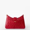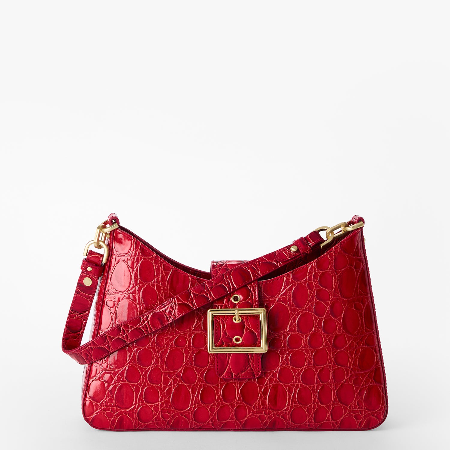 Featured in Sriracha Vanderbilt, a sophisticated new croc texture in a spicy new red for summer. This croc embossed leather features a rounded texture reminiscent of vintage crocodile handbags for a luxe look. The statement square metal buckle brings added sophistication to the overall collection. A hot hue in statement Sriracha is perfect for warmer weather. Made with genuine leather.