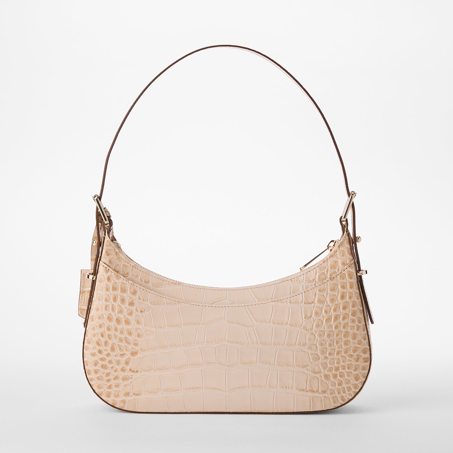 Kyrie is a small trendy shoulder bag that fits perfectly under the arm. This features an adjustable strap with modern buckles on both sides for modern luxury. The back slide in pocket and interior zip compartment are designed to keep your essentials secure.