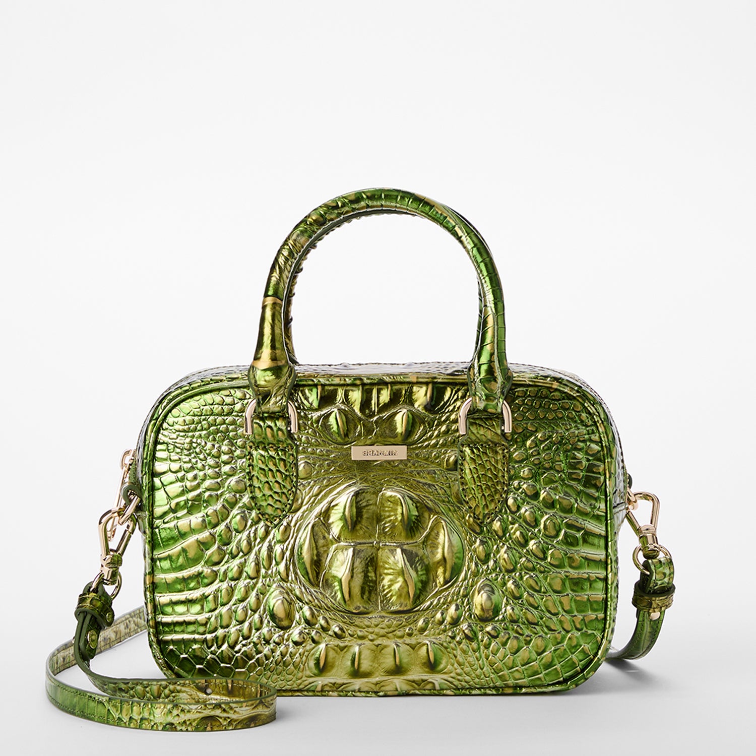 Featured in Cacti Green Melbourne, a tonal metallic olive green. This dimensional green is inspired by the lush paradise of the American desert. The metallic shines through, giving this an eye-catching element that feels perfect for warmer weather. Made with genuine leather.