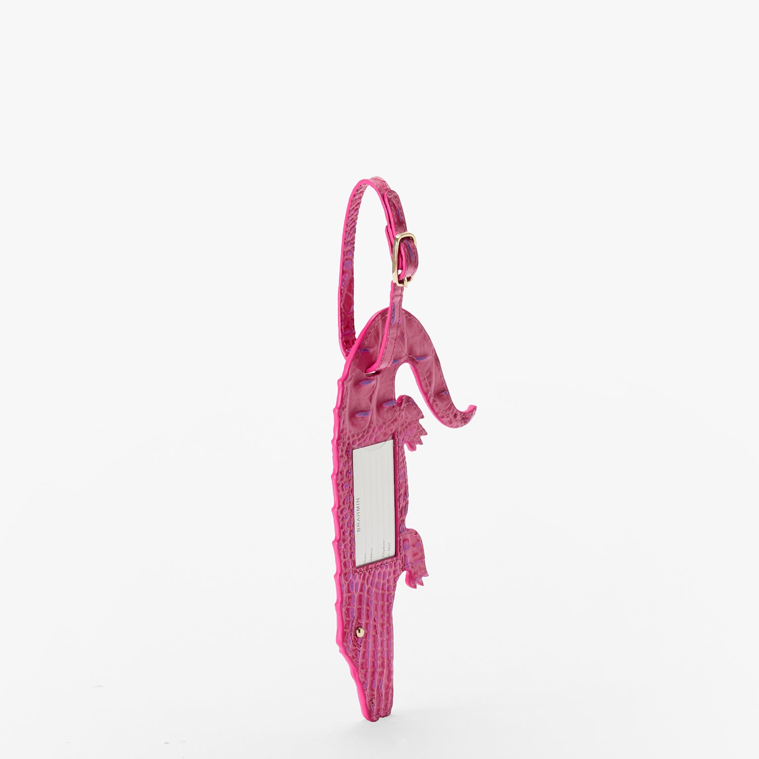 Melika is a fresh new update on our well-loved vintage croc luggage tag. The adorable crocodile shape is a nod to our adventurous spirit with a whimsical twist. A buckle closure allows easy removal and the clear ID window is perfect for easy travels. Made with genuine leather.