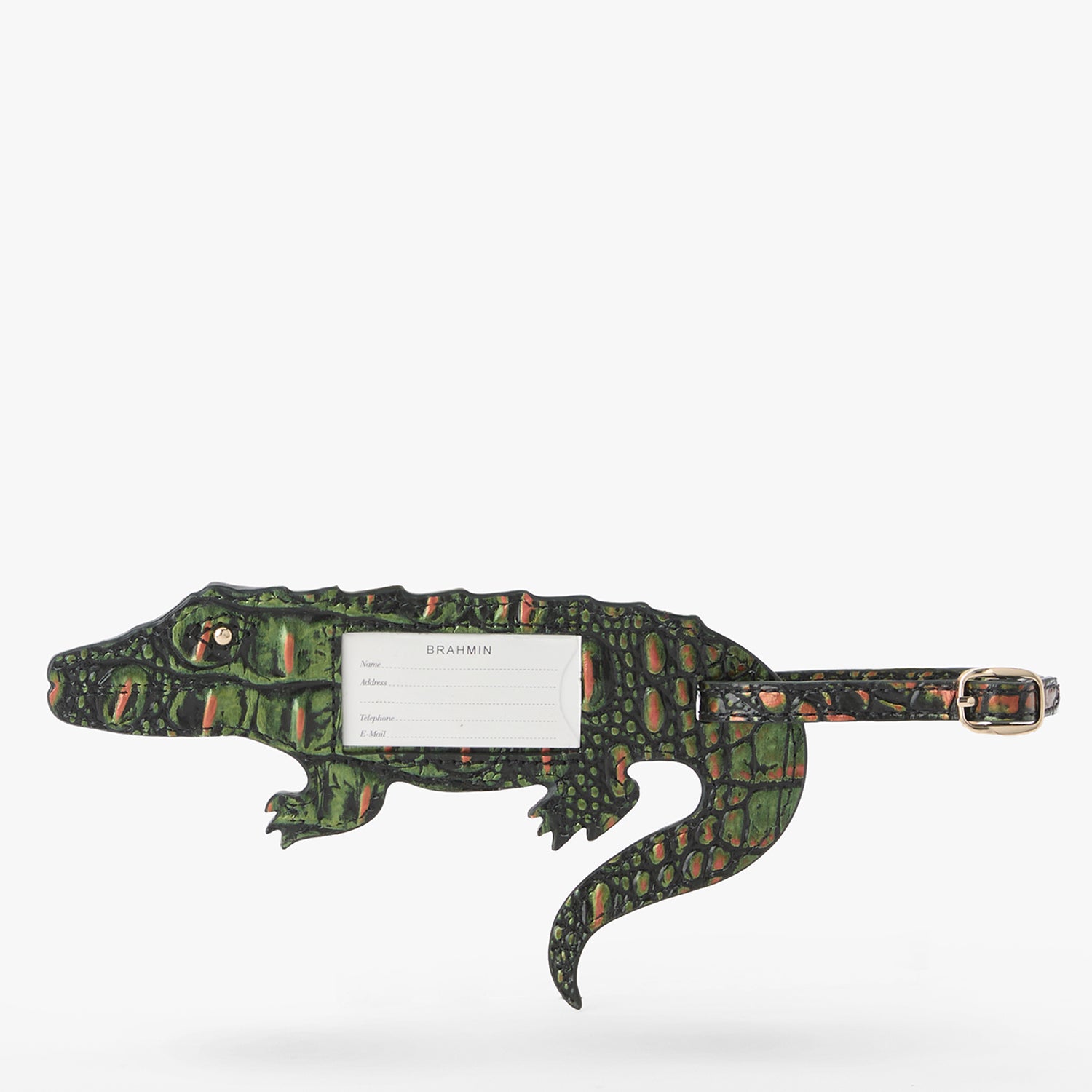 Melika is a fresh new update on our well-loved vintage croc luggage tag. The adorable crocodile shape is a nod to our adventurous spirit with a whimsical twist. A buckle closure allows easy removal and the clear ID window is perfect for easy travels. Made with genuine leather.