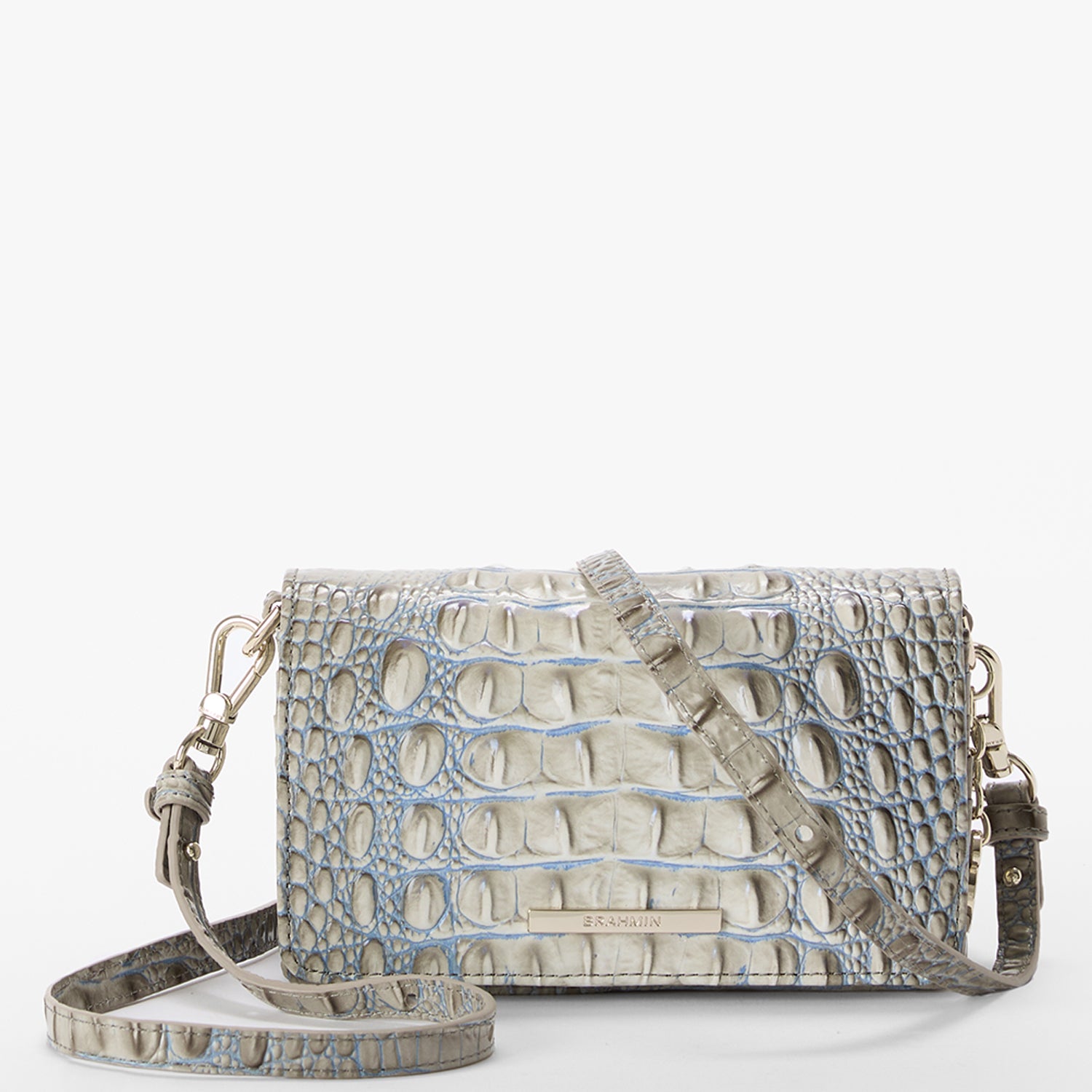 Featured in Mindful Grey Ombre Melbourne, a dimensional neutral grey. This combination of cool blues and neutrals is perfect for everyday elegance. Made with genuine leather.