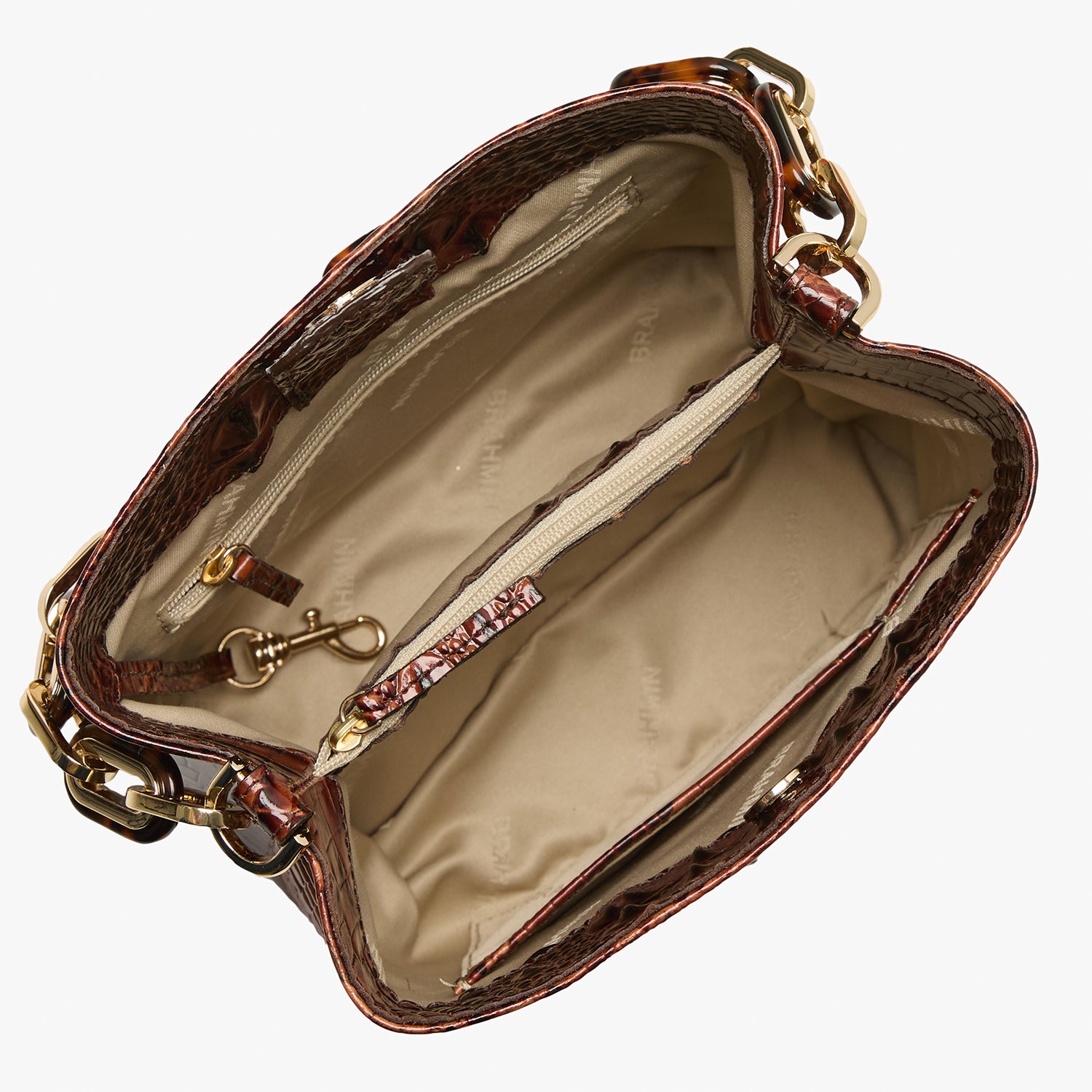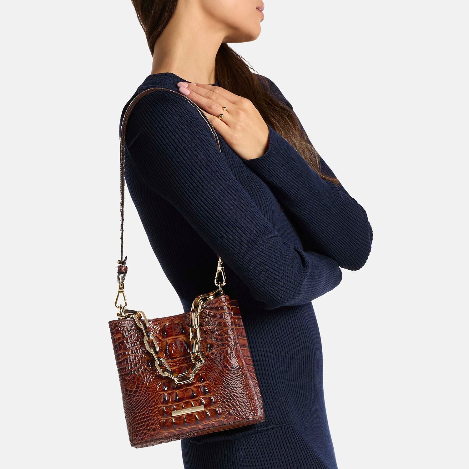 Mod Mini Amelia is a small open top crossbody designed as a new iteration of our favorite Amelia with an ultra-fresh chain handle. The versatile strap allows for this to be worn as a crossbody or shoulder bag. Interior dividers and pockets allow for easy organization.