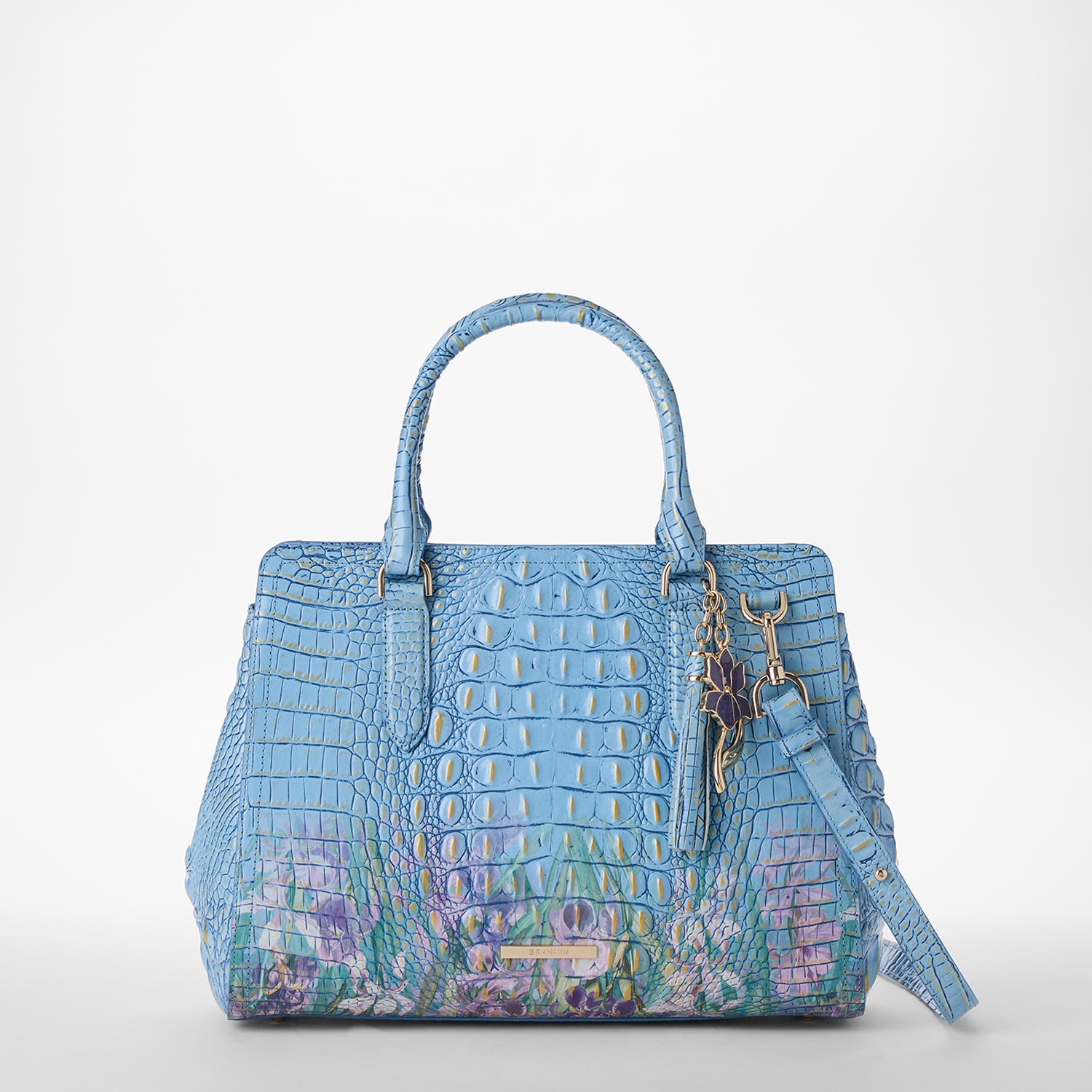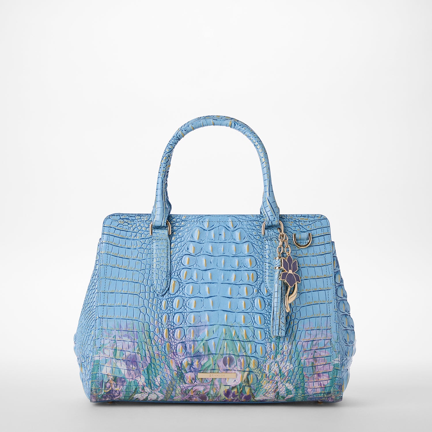 Featured in Multi Morning Dew, an artistic spin on spring florals. This expressive flower print celebrates nature in a playful yet feminine scene. A purple iris resin hang-off and tassel adds an element of personality to each style. Made with genuine leather.