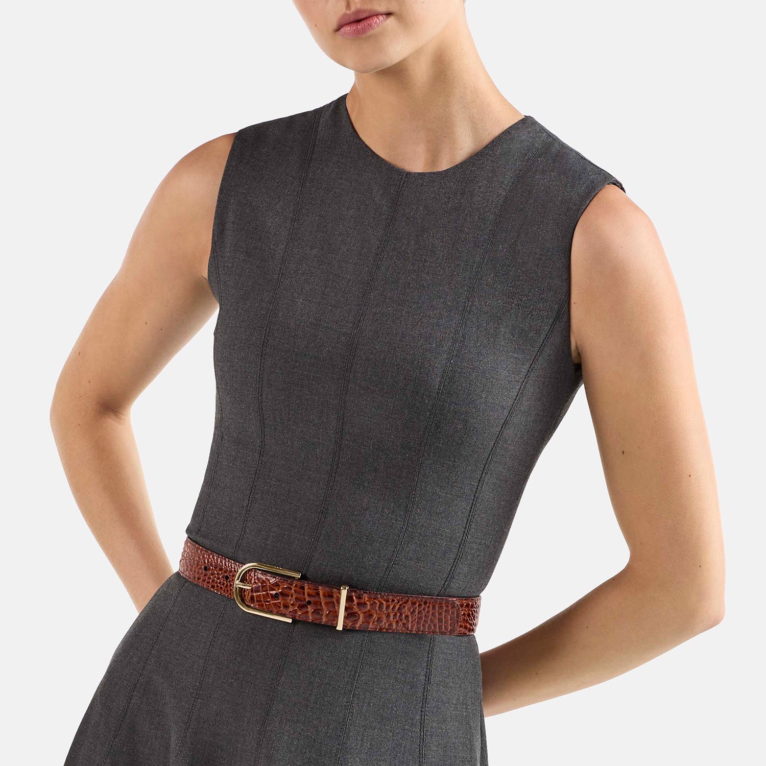 The Medium Leather Gold Buckle Belt is designed to add an elevated accent to any ensemble. The medium width belt brings colorful dimension to your look. The embossed logo design is a Brahmin signature. Made with genuine leather.