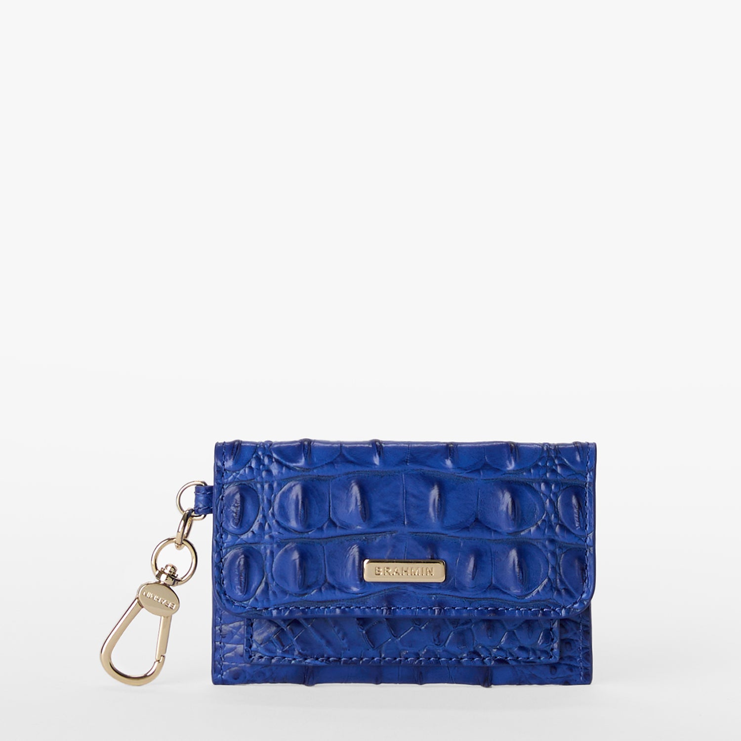 Ricki in our Alden Road leather, a lightweight, soft iteration of our iconic croc-embossed leather with casual construction that appeals to your softer side. Your go-to clip on card case that can be carried solo or clipped on to your favorite Brahmin handbags. The snap closure is easy to use, and the slim main compartment can store multiple credit cards and small essentials. The front slip pocket is the perfect place for your ID.